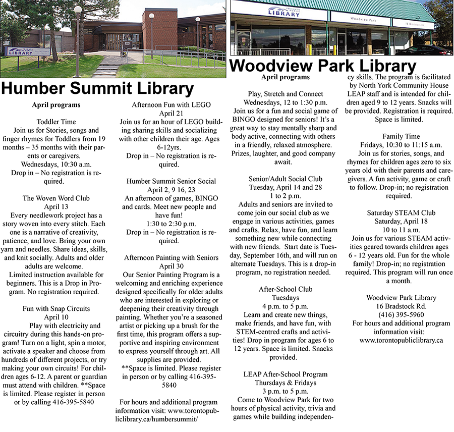 Humber Summit Library and Woodview Park Library - March 2026